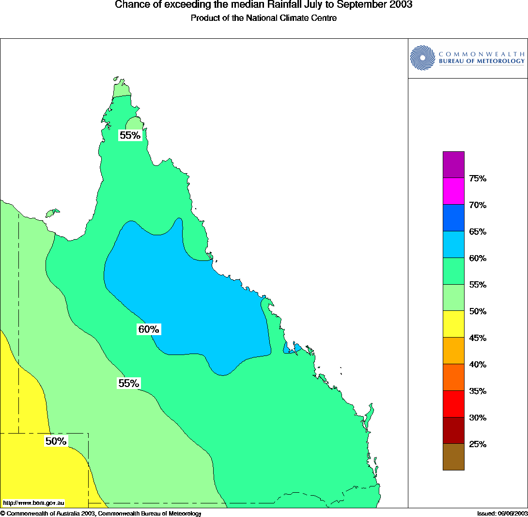 The Bureau's latest seasonal rainfall outlook shows an increased