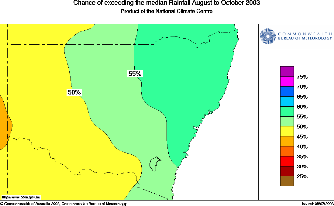 For the August to October period in New South Wales, the chances of above