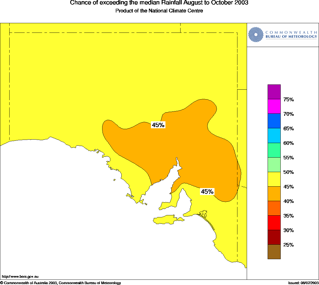 The Bureau's August to October rainfall outlooks have moderate reliability