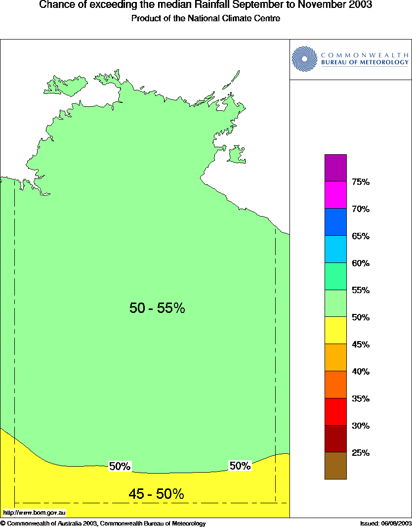 rainfall are mainly between 50 and 55% across the Northern Territory (see map).