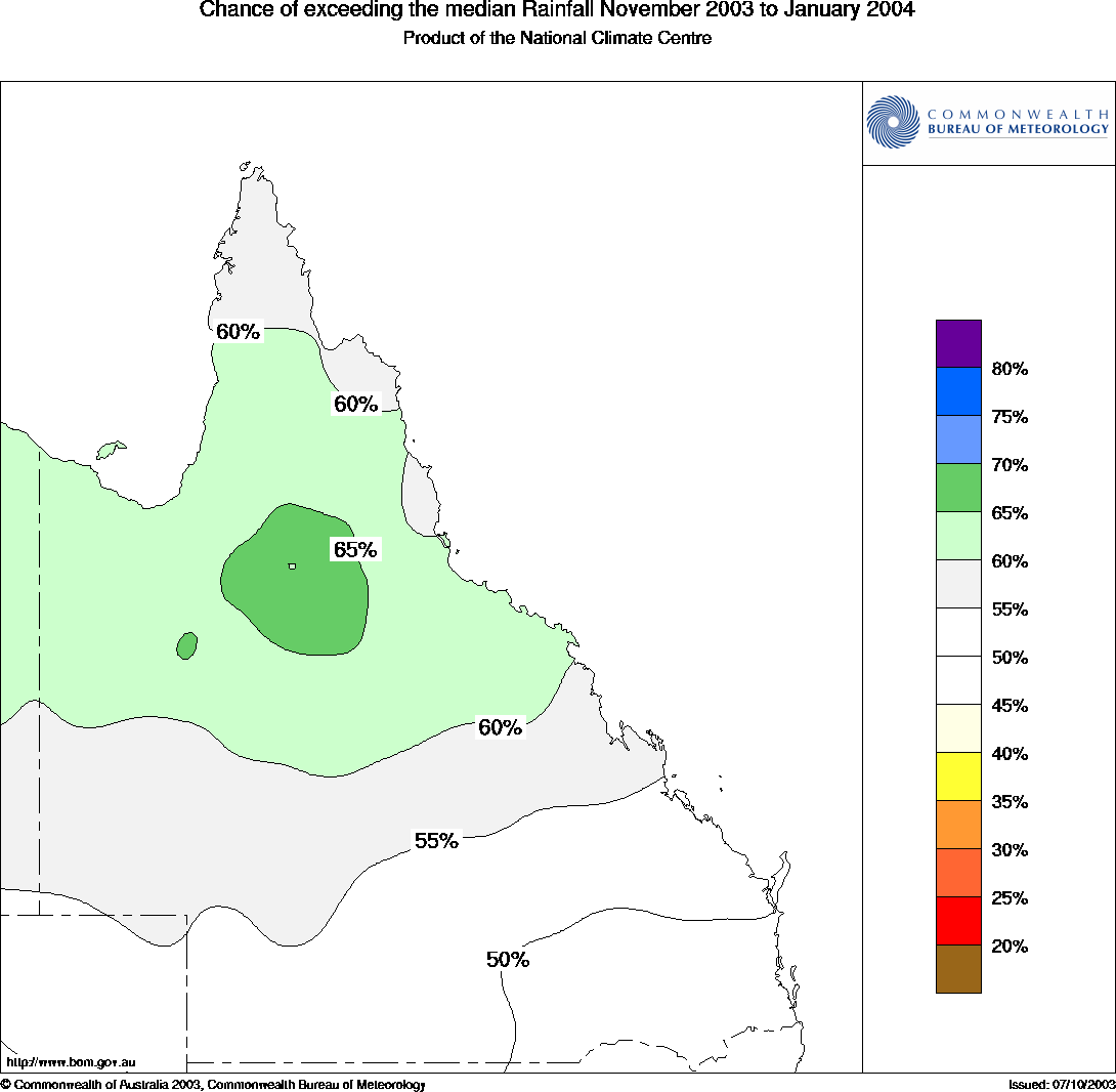 rainfall are between 60 and 70% north of about Mackay, but excluding