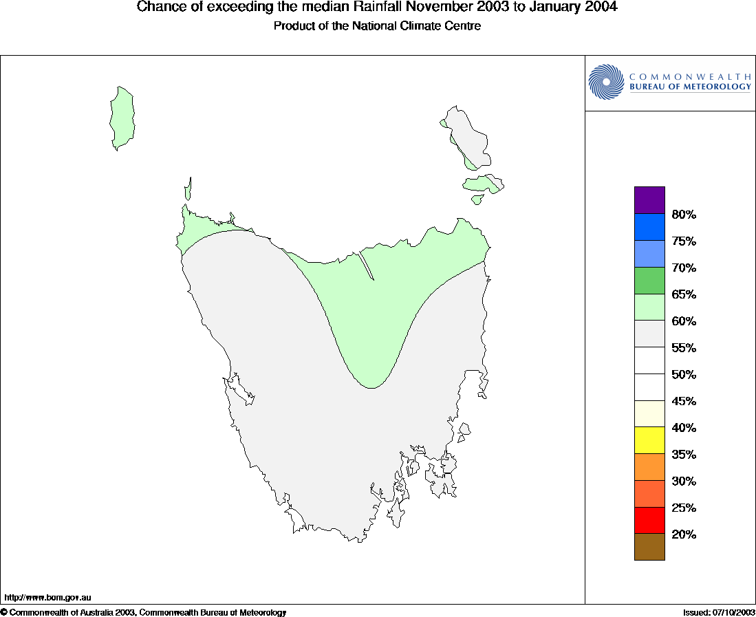 In remaining parts of Tasmania, the odds for above average seasonal falls
