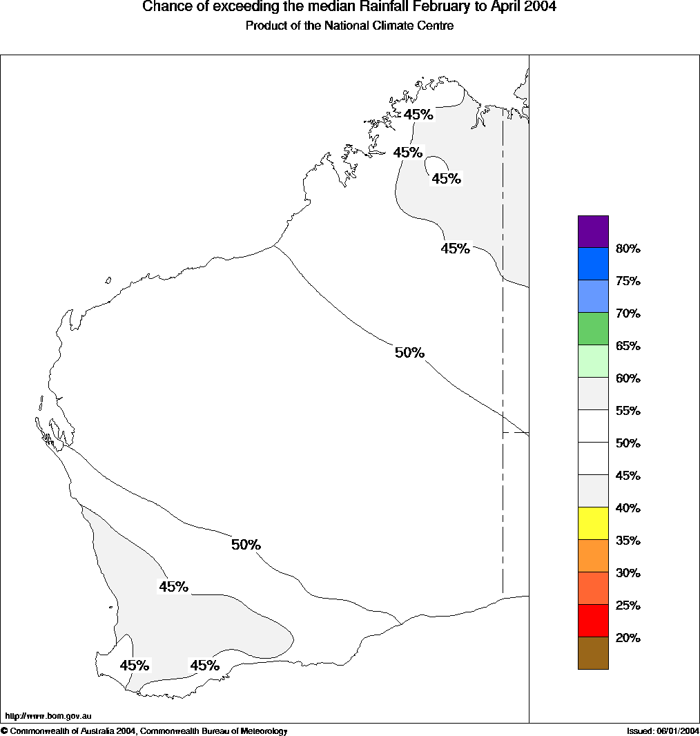 For the February to April period in WA, the chances of above median