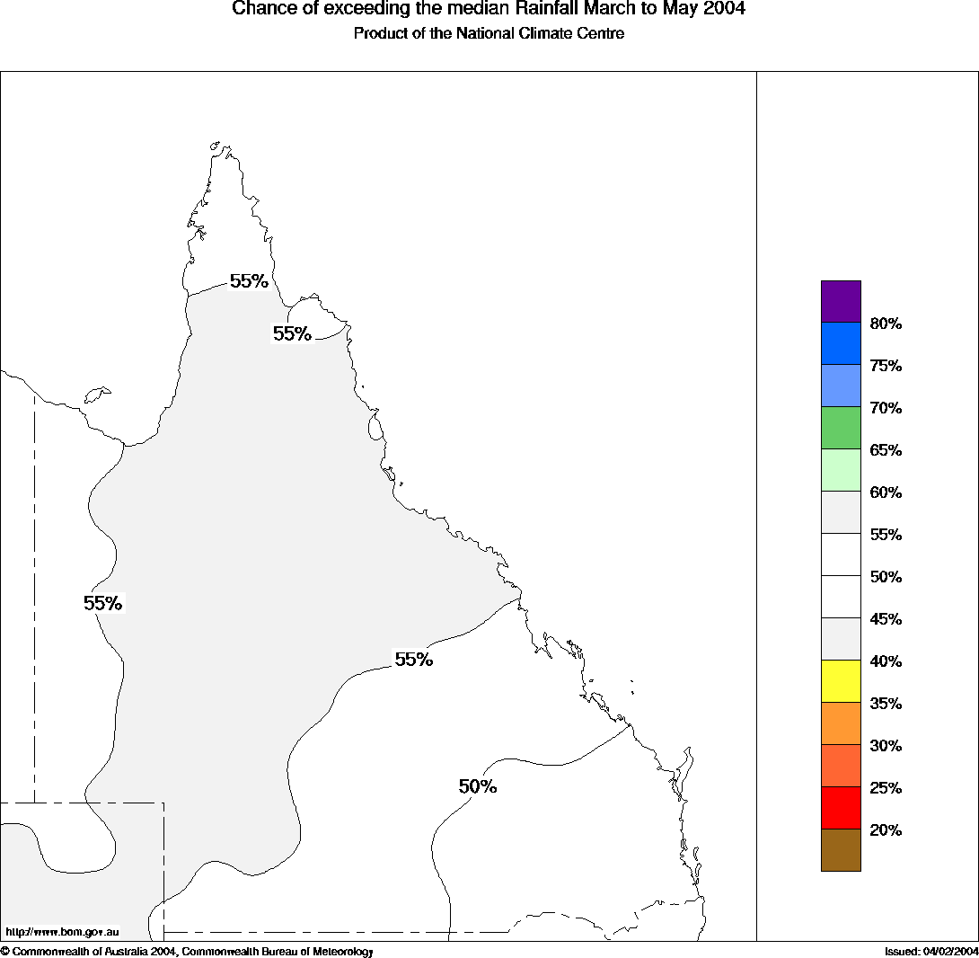 median rainfall generally vary between 45 and 60% across Queensland (see map).