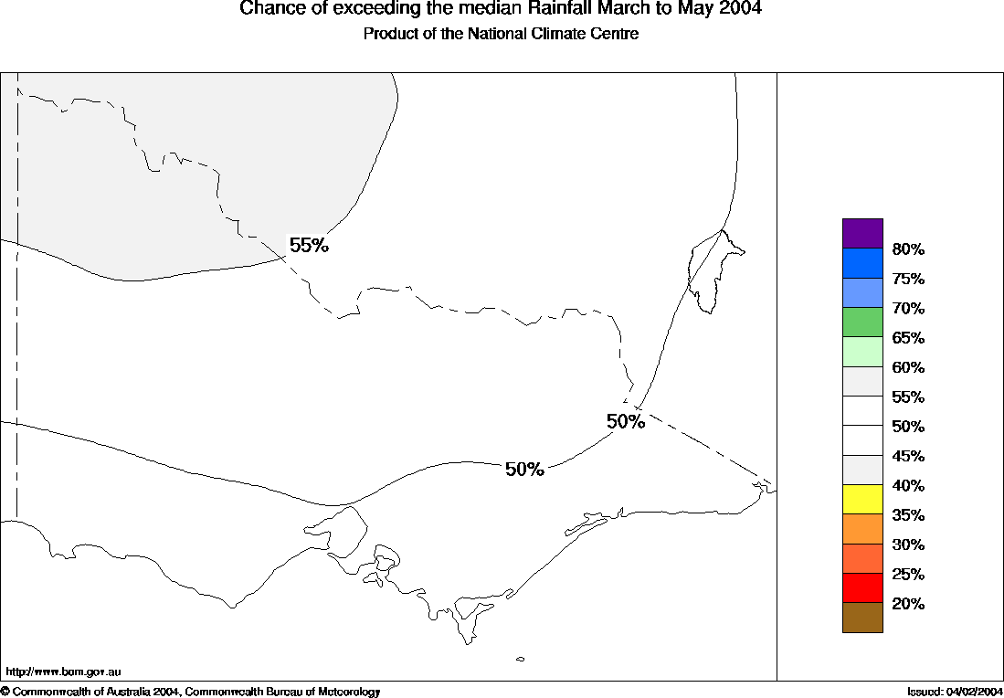 median rainfall are mainly between 45 and 55% over Victoria (see map).