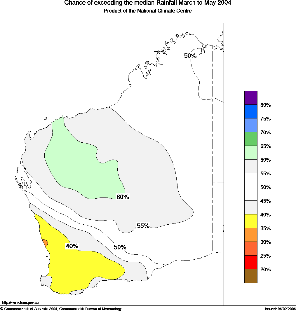 median rainfall are mainly between 35 and 40% in southwest WA (see map),