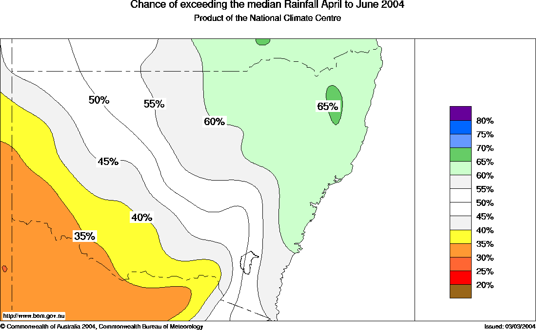 60 to 65% range in the northeast quarter of NSW and along parts of the