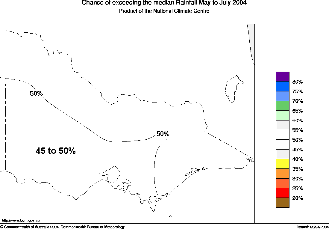 For the May to July period, the chances of above median rainfall