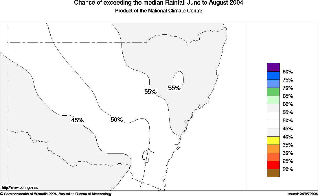 The Bureau's winter rainfall outlook for NSW shows a pattern of
