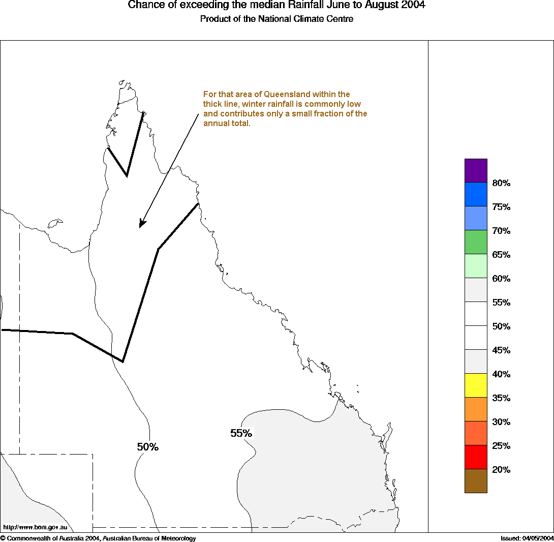 The Bureau's winter rainfall outlook for Queensland shows a pattern of