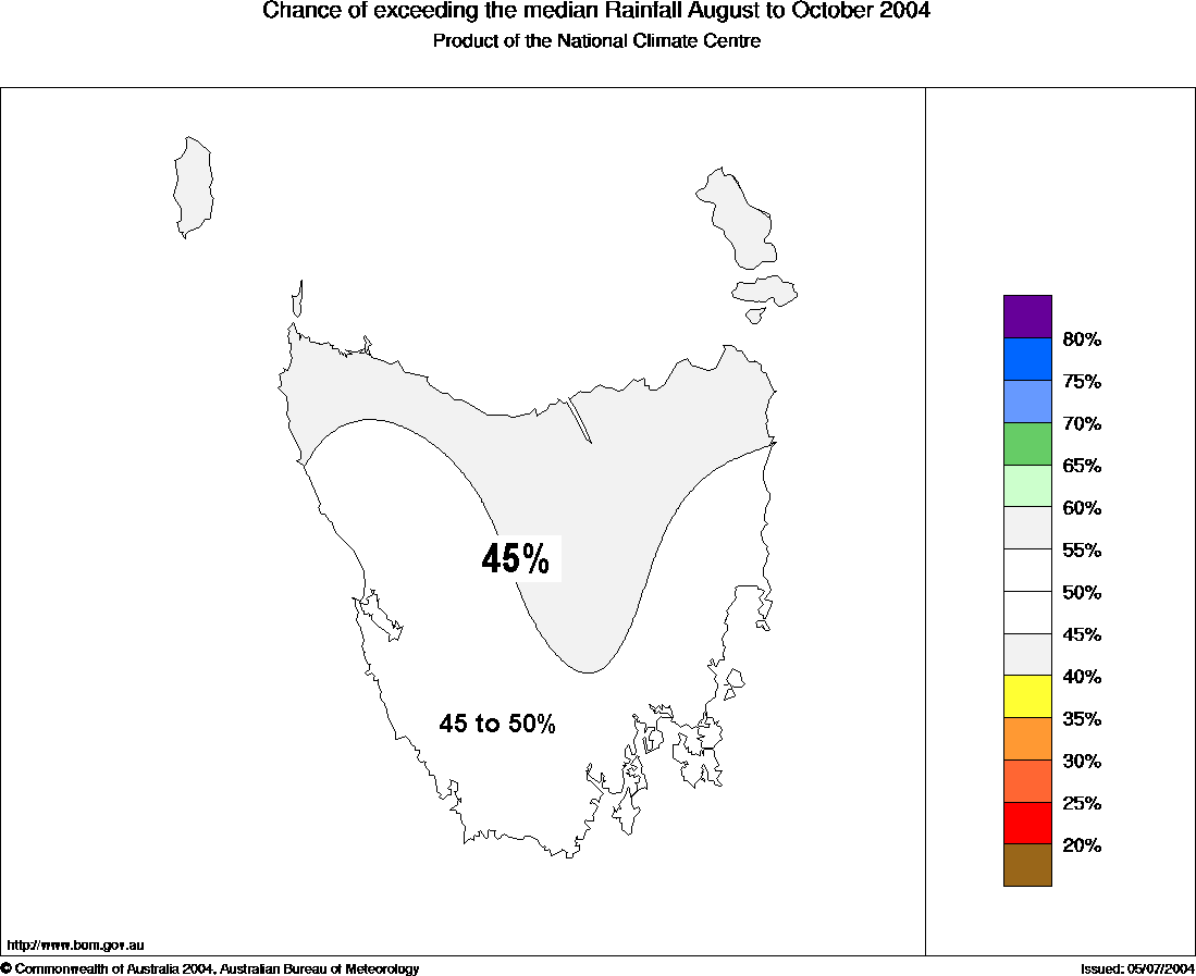 Seasonal rainfall odds close to 50:50 in Tasmania