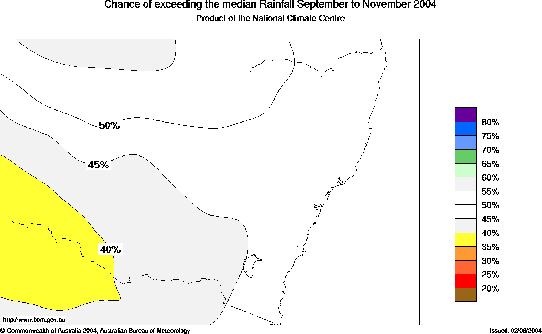 Across the far southwest of NSW, the chances of above median rainfall for spring are