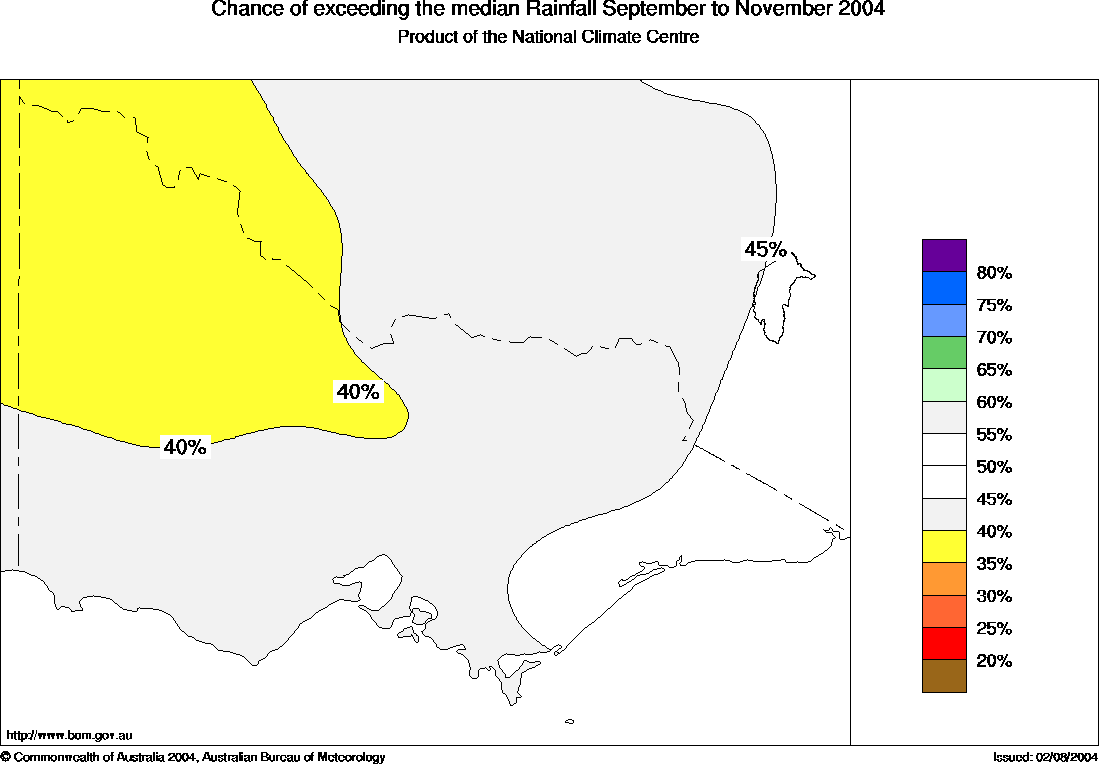 Across northwest Victoria, the chances of above median rainfall for spring are below 40%,
