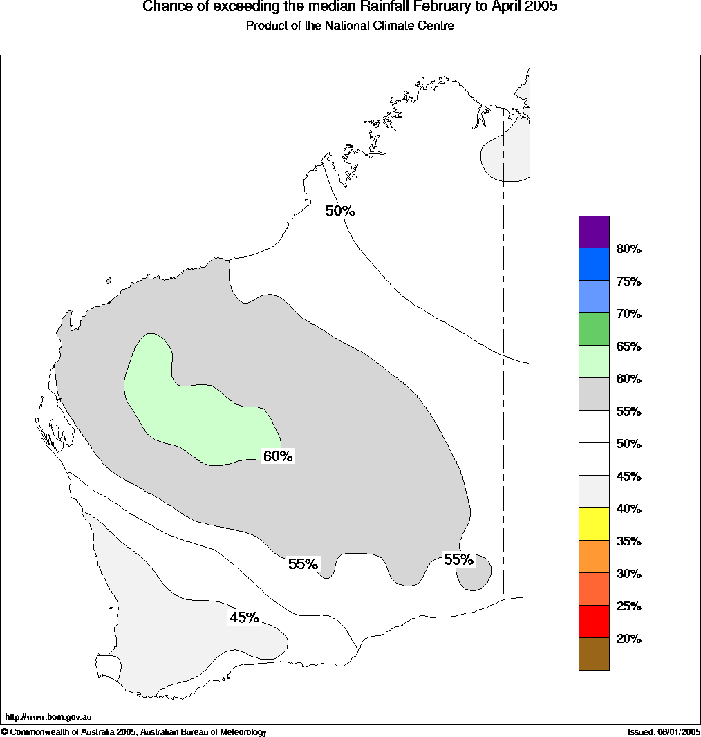 summer to mid-autumn quarter (Feb-Apr) in parts of western WA, the Bureau of Meteorology