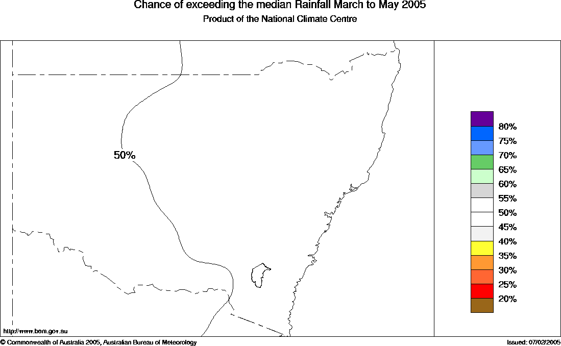 The chances of accumulating at least average autumn (Mar-May) rainfall are close to 50%