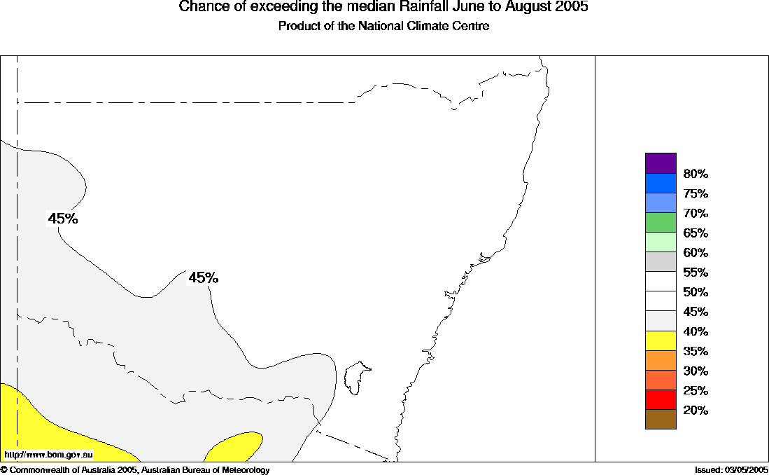 NSW Seasonal Rainfall Outlook: probabilities for Winter 2005, issued 17th May 2005 | |