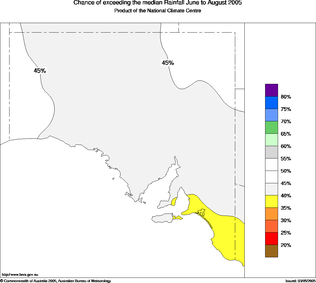 More information on this outlook is available from 9.00am to 5.00pm (CST) Monday to Friday by contacting the Climate and Consultancy section in the Bureau's Adelaide Office: (08) 8366 2664. | |