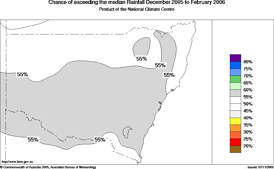 NSW Seasonal Rainfall Outlook: probabilities for Summer 2005/2006, issued 16th November 2005 | |