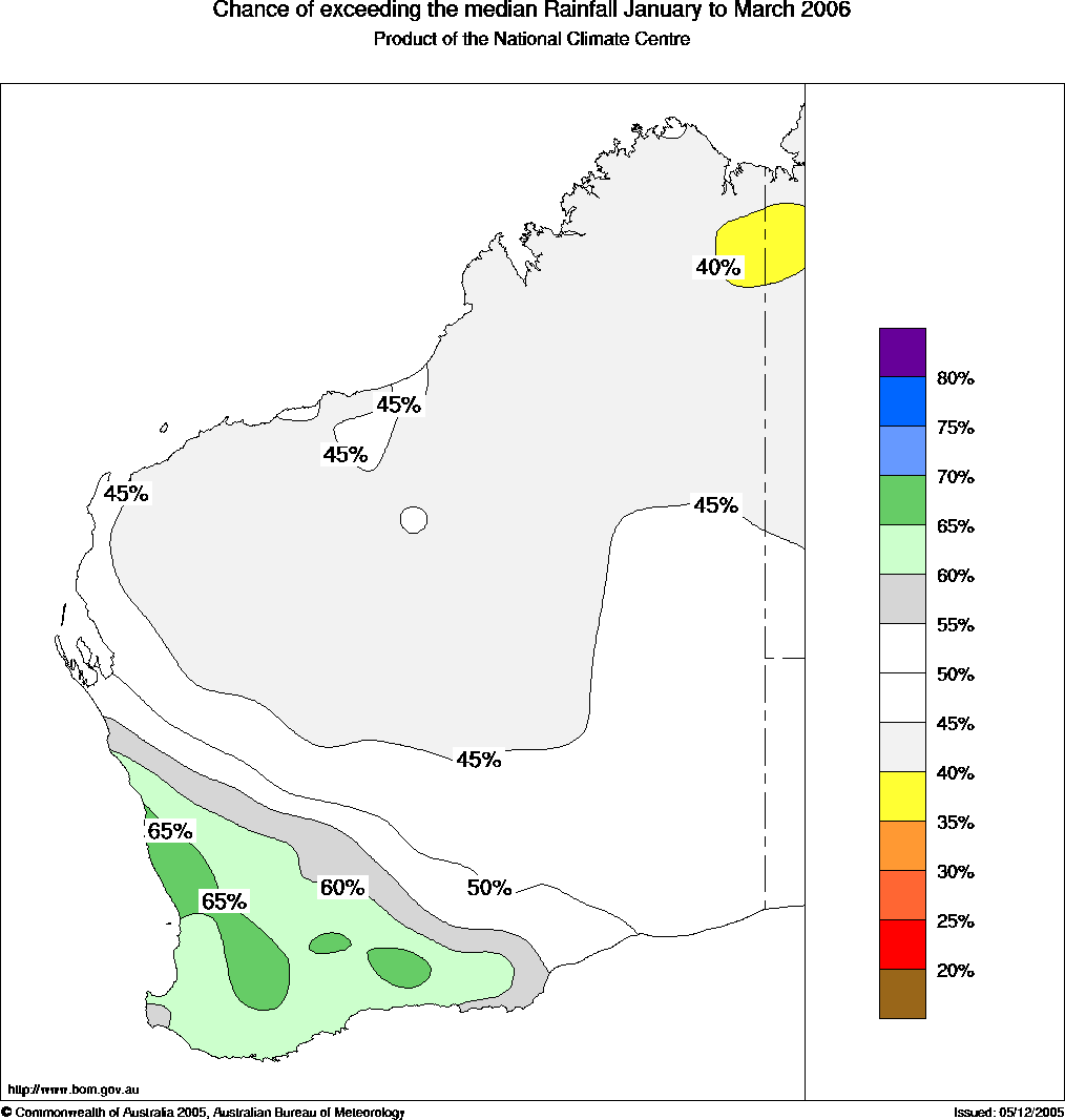 More information on this outlook is available from 9.00am to 5.00pm (WST) Monday to Friday by contacting the Climate and Consultancy section in the Bureau's Perth Office: (08) 9263 2222. | |