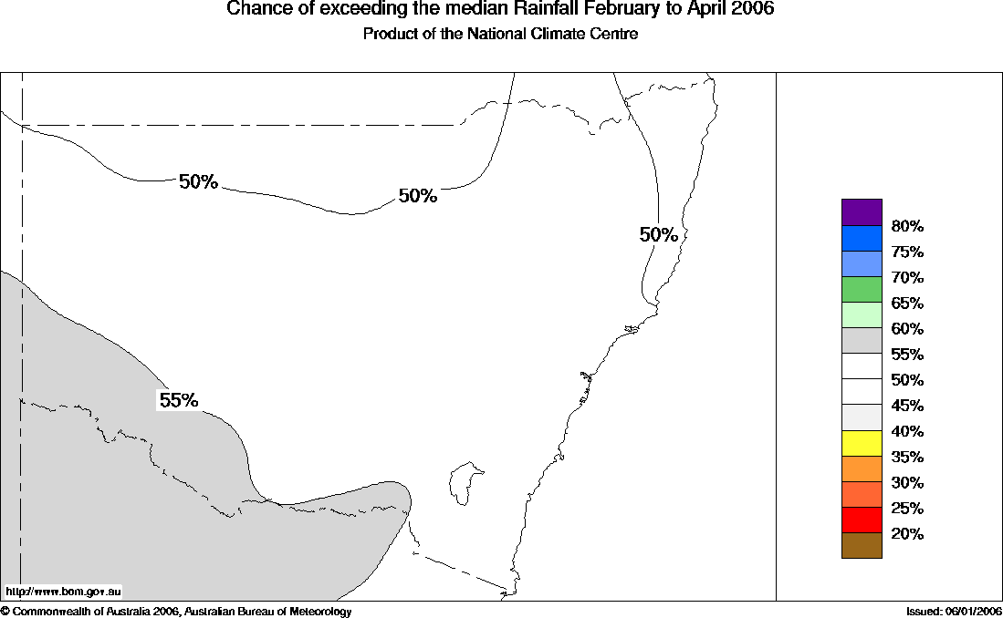 NSW Seasonal Rainfall Outlook: probabilities for February to April 2006, issued 24th January 2006 | |