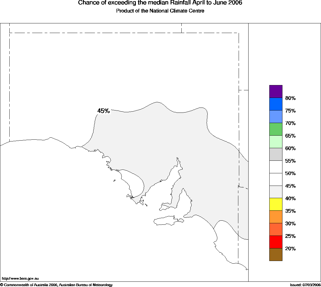 SA Seasonal Rainfall Outlook: probabilities for April to June 2006, issued 23rd March 2006 | |