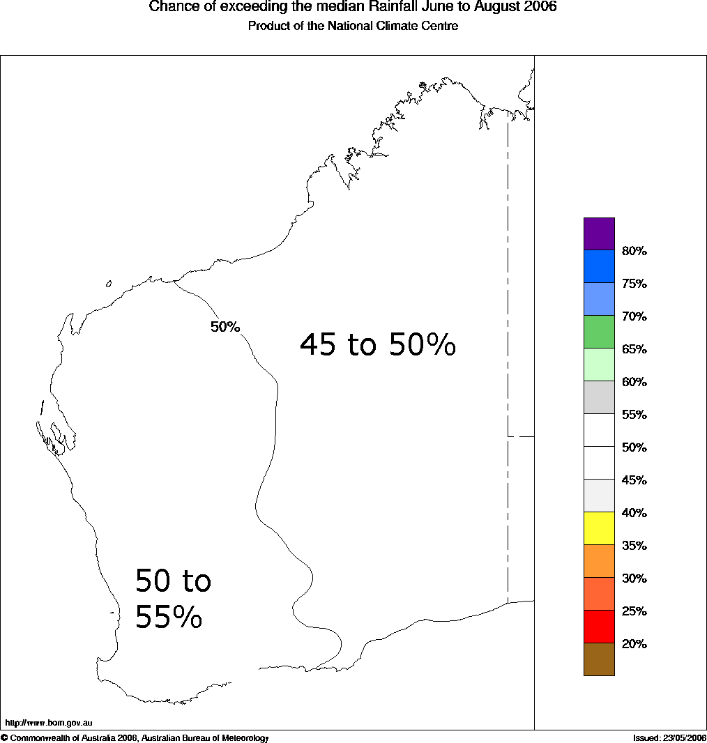 WA Seasonal Rainfall Outlook: probabilities for Winter 2006,