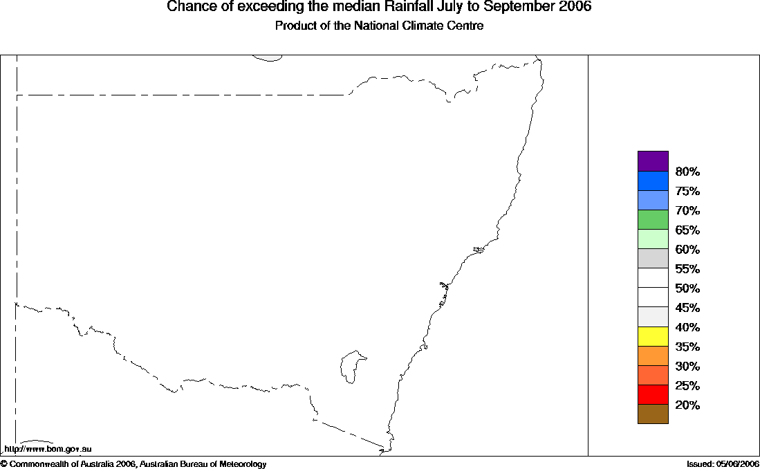 NSW Seasonal Rainfall Outlook: probabilities for July to September 2006, issued 27th June 2006 | |