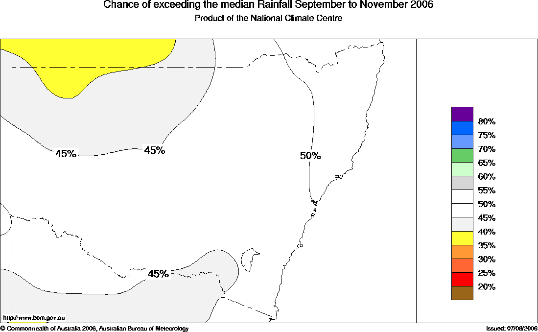 NSW Seasonal Rainfall Outlook: probabilities for Spring 2006, issued 23rd August 2006 | |