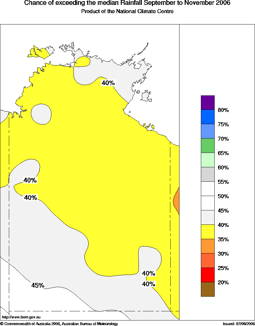 NT Seasonal Rainfall Outlook: probabilities for Spring 2006, issued 23rd August 2006 | |