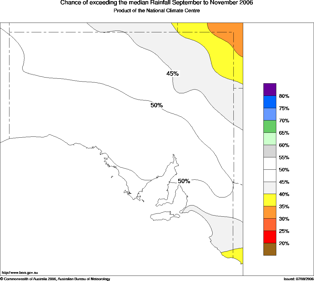 SA Seasonal Rainfall Outlook: probabilities for Spring 2006, issued 23rd August 2006 | |