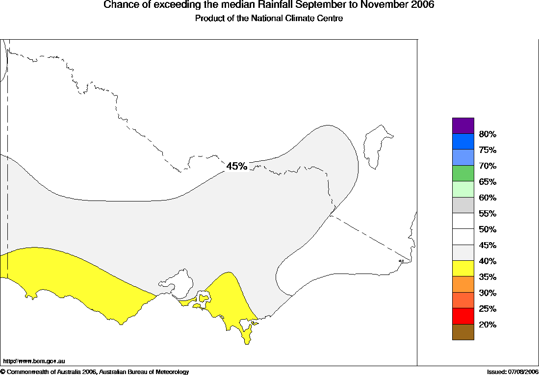 Vic Seasonal Rainfall Outlook: probabilities for Spring 2006, issued 23rd August 2006 | |