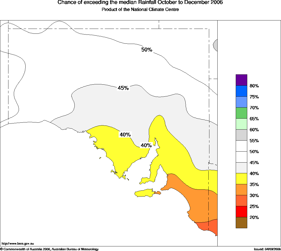 SA Seasonal Rainfall Outlook: probabilities for October to December 2006, issued 26th September 2006 | |