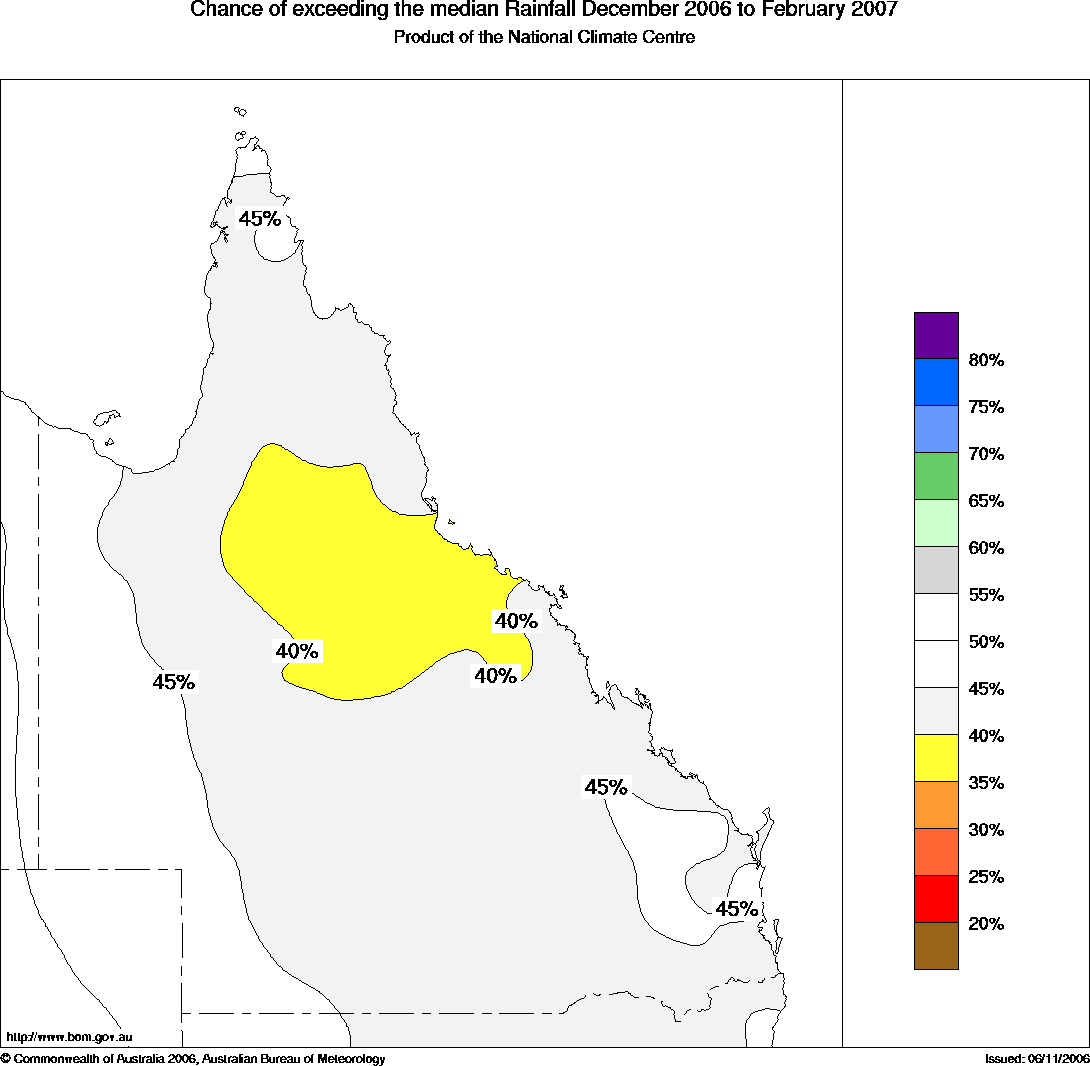 Qld Seasonal Rainfall Outlook: probabilities for Summer 2006/2007, issued 23rd November 2006 | |