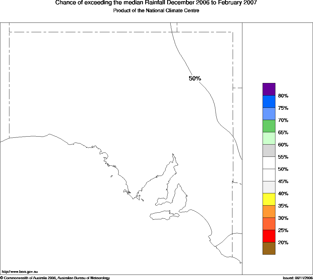 More information on this outlook is available from 9.00am to 5.00pm (CST) Monday to Friday by contacting the Climate and Consultancy section in the Bureau's Adelaide Office: (08) 8366 2664. | |