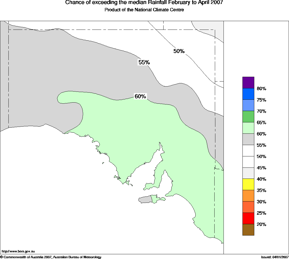More information on this outlook is available from 9.00am to 5.00pm (CST) Monday to Friday by contacting the Climate and Consultancy section in the Bureau's Adelaide Office: (08) 8366 2664. | |