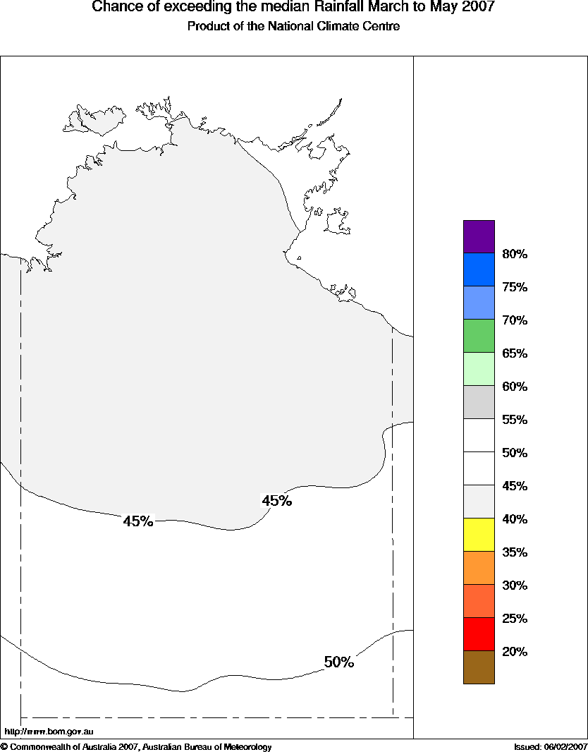 NT Seasonal Rainfall Outlook: probabilities for Autumn 2007, issued 22nd February 2007 | |