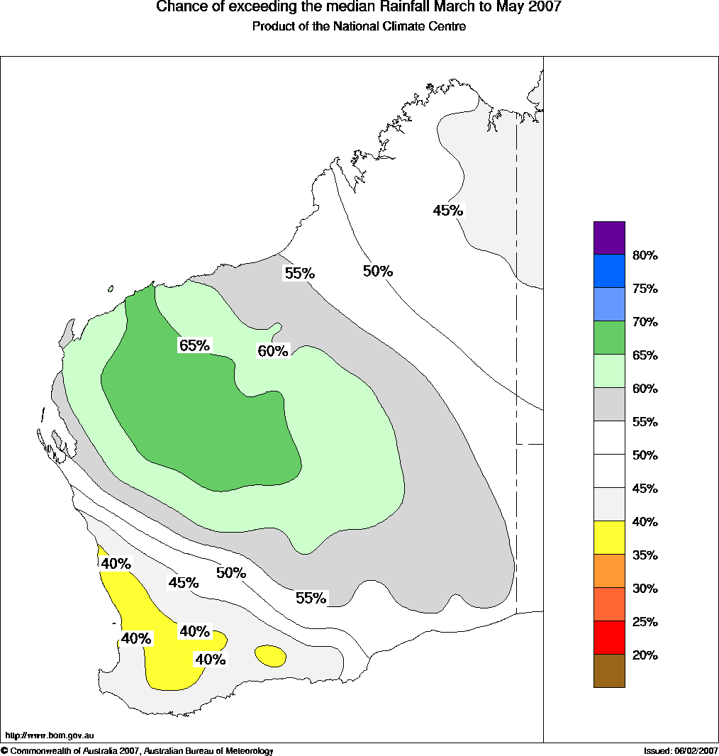 More information on this outlook is available from 9.00am to 5.00pm (WST) Monday to Friday by contacting the Climate and Consultancy section in the Bureau's Perth Office: (08) 9263 2222. | |
