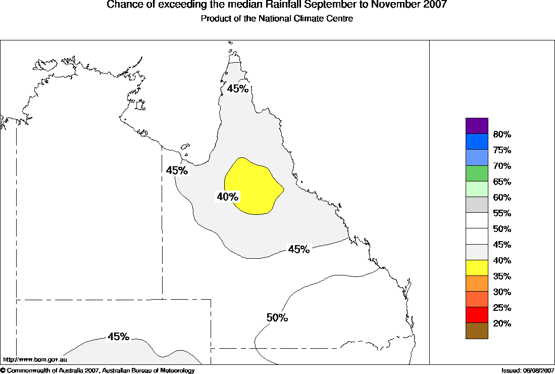 More information on this outlook is available Monday to Friday by contacting the Bureau's Climate Services sections in Queensland and the Northern Territory at the following numbers: