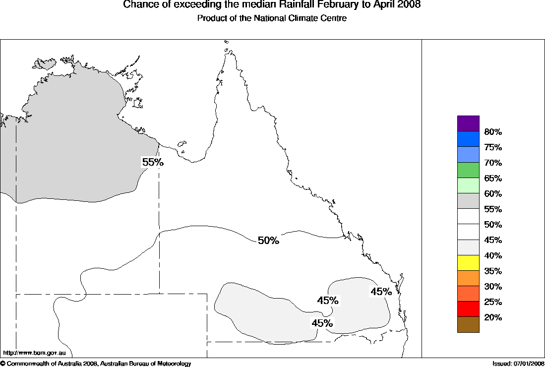 and 60% over Queensland and the NT. So the chances of being wetter than normal