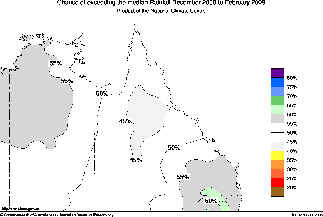 in southeast of Queensland shows a small bias toward above median rainfall.