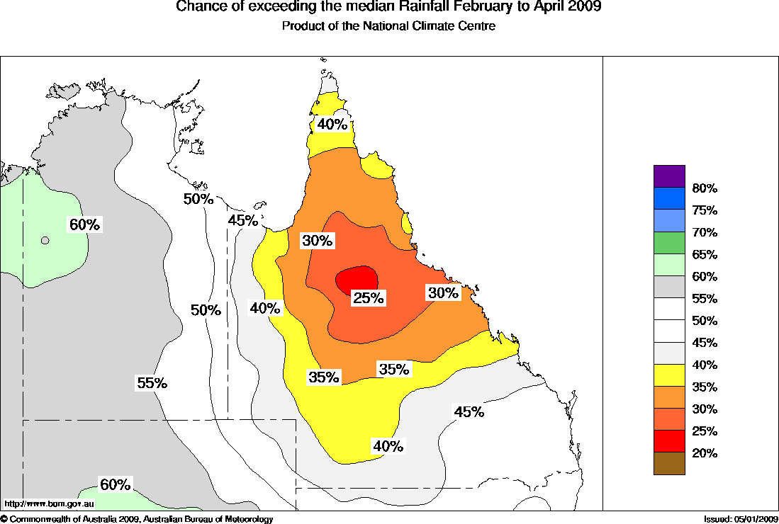 More information on this outlook is available by contacting the Bureau's Climate Services sections in Queensland and the Northern Territory at the following numbers: