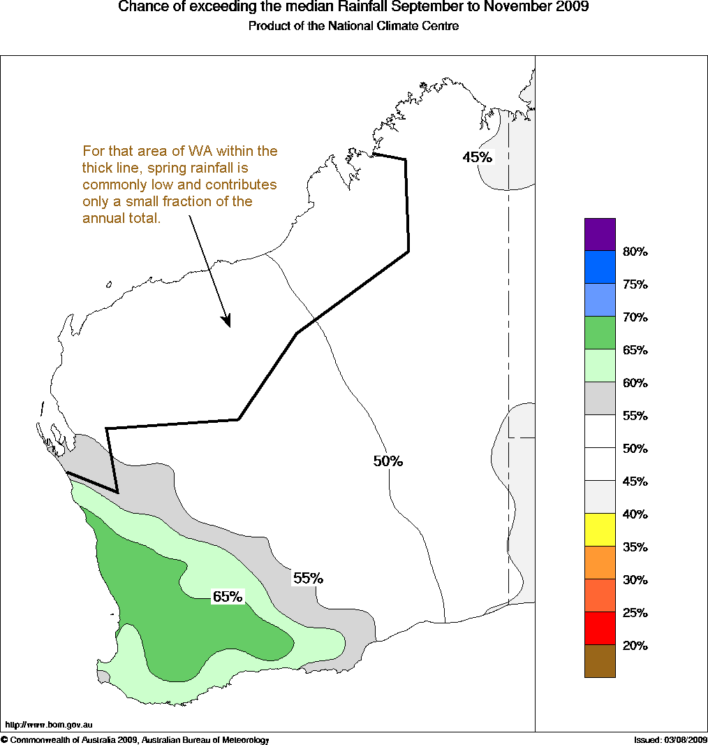 WA Seasonal Rainfall Outlook: probabilities for Spring 2009, issued 26th August 2009 | |
