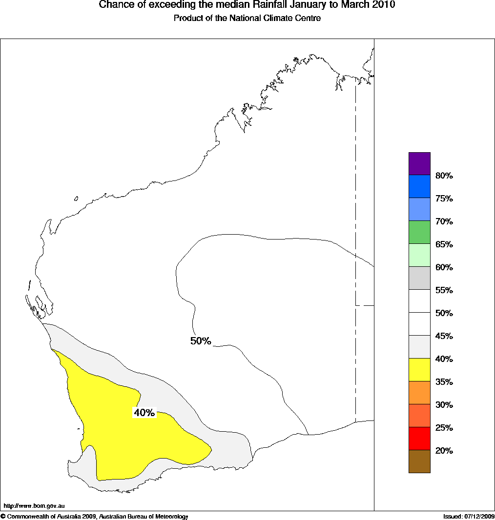 More information on this outlook is available from 8.30am to 4.30pm (WST) Monday to Friday by contacting the Climate Services Centre in the Bureau's Perth Office: (08) 9263 2222.