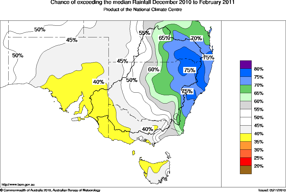 Southeastern Aust Seasonal Rainfall Outlook: probabilities for Summer 2010/2011, issued 23rd November 2010