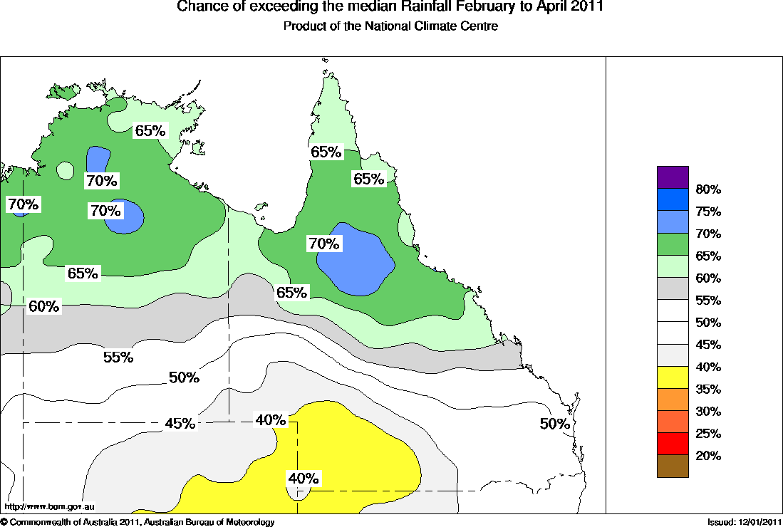 Northern Aust Seasonal Rainfall Outlook: probabilities for February to April 2011, issued 20th January 2011