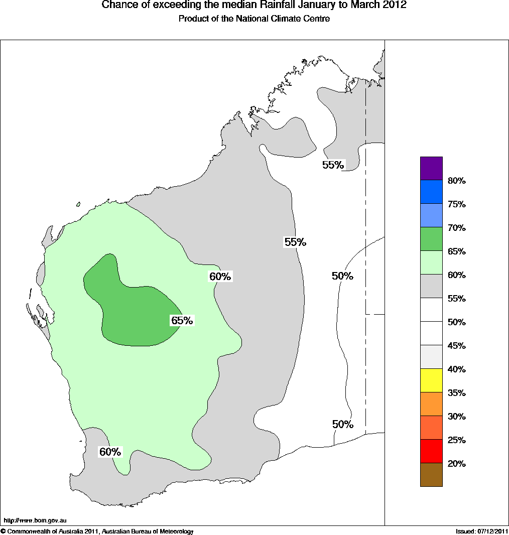 The Western Australian outlook for January to March 2012 shows the following: