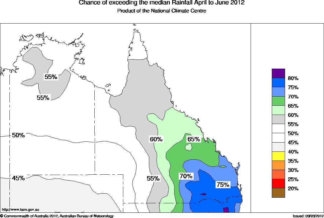 The northern Australian outlook for April to June 2012 shows the following: