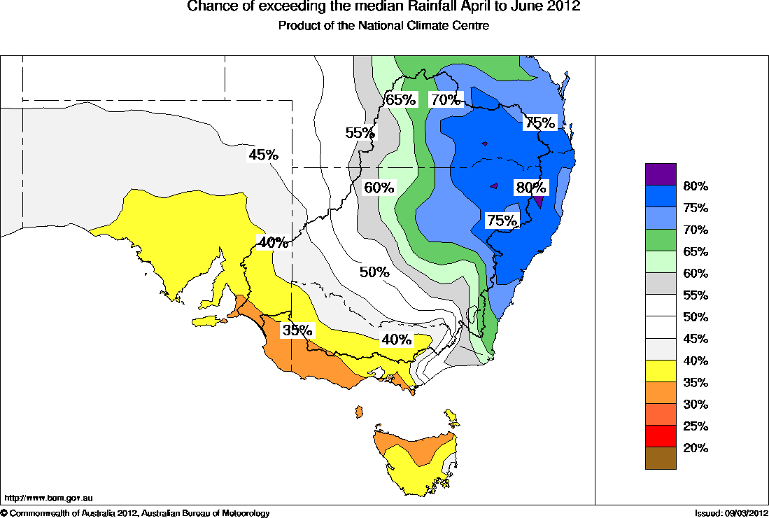 Southeastern Aust Seasonal Rainfall Outlook: probabilities for April to June 2012, issued 21st March 2012