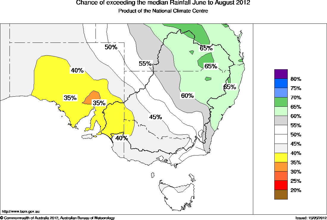 Southeastern Aust Seasonal Rainfall Outlook: probabilities for Winter 2012, issued 23rd May 2012