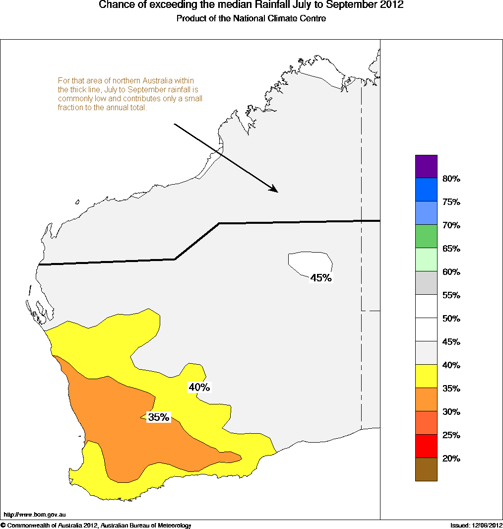 WA Seasonal Rainfall Outlook: probabilities for July to September 2012, issued 20th June 2012